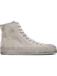 High-top calfskin suede sneakers. · Smudging throughout · Lace-up closure · Zip closure at inner side · Pull-loop and rivet at collar · Treaded rubber sole Supplier color: Chalk Upper: calfskin. Sole: rubber. Made in Italy 252378M236002