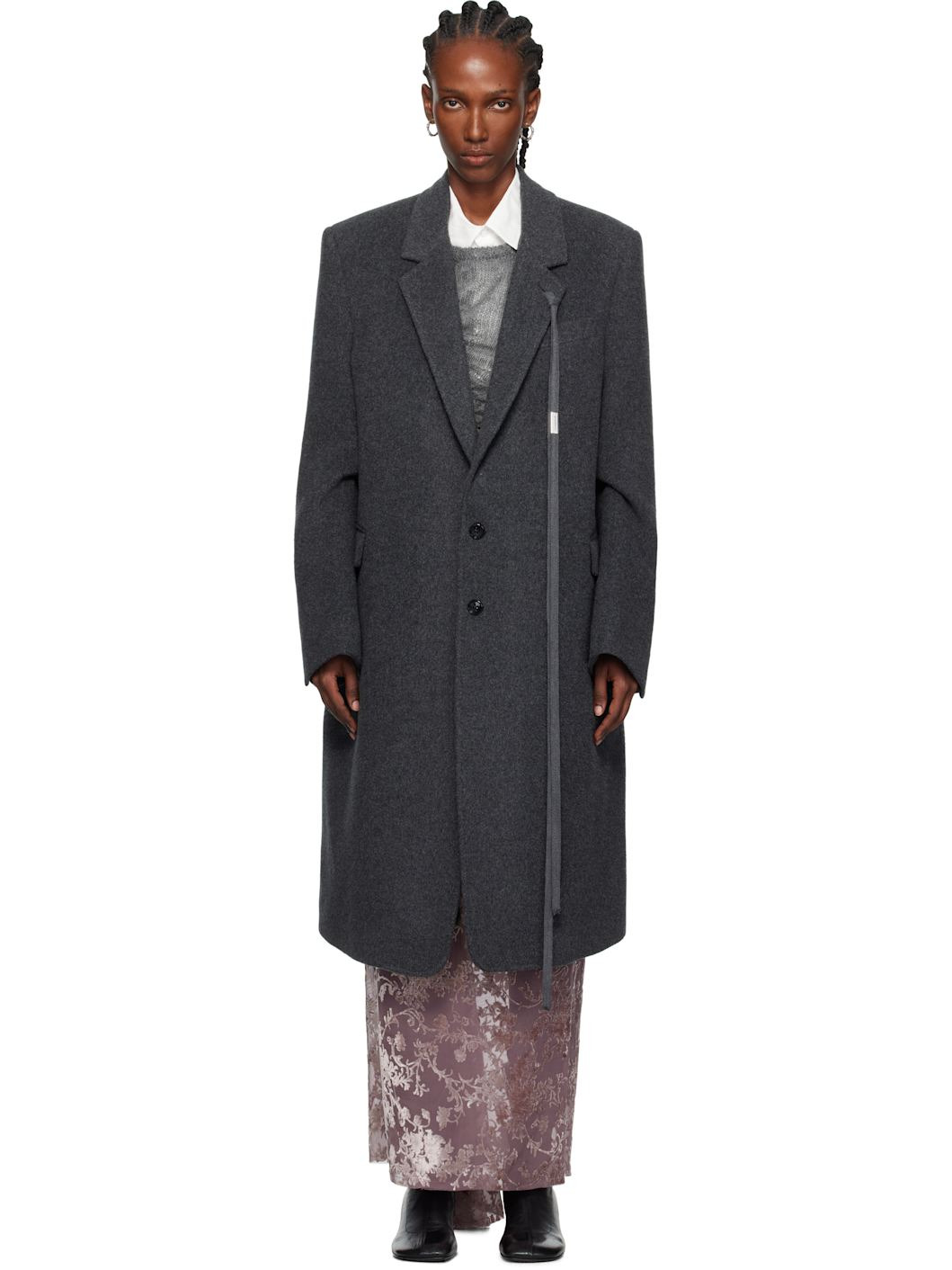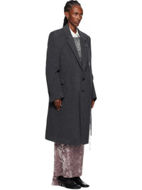 Wool-blend melton coat. · Notched lapel · Detachable grosgrain ribbon with logo plaque at lapel · Button closure · Flap pockets at waist · Padded shoulders · Central vent at back hem · Welt pockets at interior · Plain-woven cotton lining Supplier color: Grey melange Body: 70% wool, 30% polyamide. Lining 1: 100% cotton. Lining 2: 52% viscose, 48% cotton. Made in Italy 252378F059000