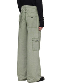 Cotton canvas cargo pants. · Fading throughout · Wide-leg · Belt loops · Five-pocket styling · Button fly · Detachable ribbon with logo plaque at waist · Flap pocket at outseam · Cinch strap at back Supplier color: Sage 100% cotton. Made in Italy 252378M188001