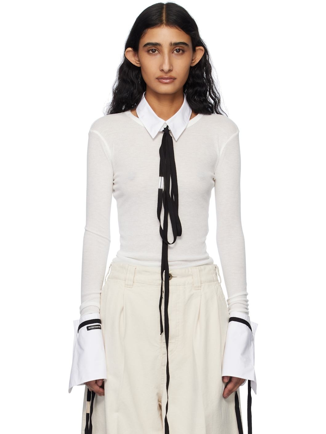Semi-sheer viscose-blend ribbed jersey T-shirt. Crewneck. Supplier color: Natural white