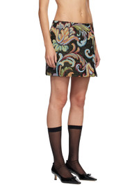 Gobelin miniskirt. · Jacquard graphic pattern throughout · Vent at front hem · Concealed zip closure at side · Full twill lining Supplier color: Black multi Body: 37% acrylic, 35% recycled polyester, 16% cotton, 10% wool, 2% polyester. Lining: 100% polyester. Made in United States 252894F090000