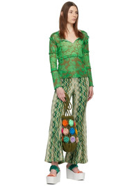 Long sleeve paneled semi-sheer mesh T-shirt featuring graphic pattern in tones of green. · Self-tie fastening at crewneck collar · Lettuce edges throughout Supplier color: Glo green 100% polyester. Made in United States 221894F110009