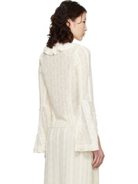 Semi-sheer stretch nylon lace blouse. · Ruffles at V-neck and placket · Button closure · Vent at flared cuffs Supplier color: Cream 90% nylon, 10% spandex. Made in United States 261894F107000
