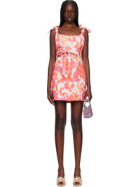 Plain-woven cotton-blend minidress. Floral pattern printed throughout. · Off-the-shoulder construction · Gathering at straight neck · Self-tie fastening at waist · Self-tie shoulder straps · Concealed zip closure at back Supplier color: Coral multi Body: 43% cotton, 40% polyester, 7% viscose, 7% acrylic, 3% polyamide. Lining: 100% polyamide. Made in United States 251894F052015