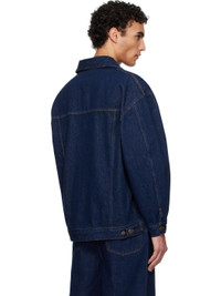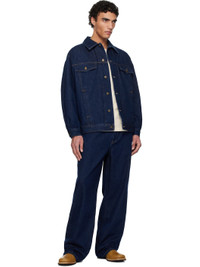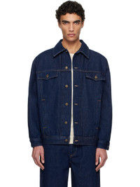 Loose-fit non-stretch denim jacket. · Spread collar · Button closure · Flap pockets at chest · Seam pockets · Dropped shoulders · Single-button barrel cuffs · Adjustable button tabs at back hem · Logo-engraved antiqued brass-tone hardware · Contrast stitching in tan Supplier color: Stonewashed indigo 100% cotton. Made in Egypt 251252M177002
