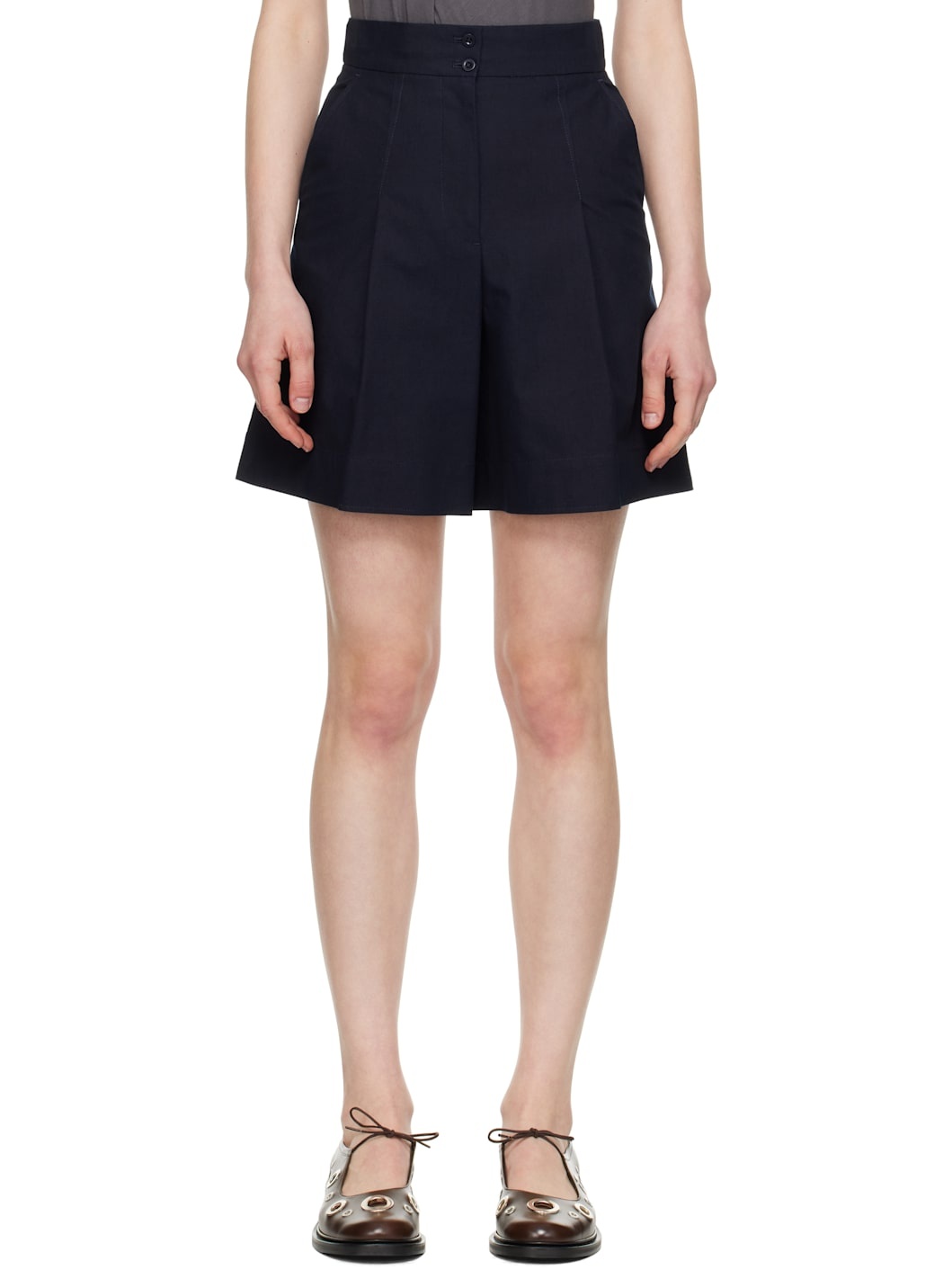 Textured plain-woven cotton shorts. · Four-pocket styling · Zip fly · Pleats at front Supplier color: Dark navy 100% cotton. Made in Bulgaria 251252F088002