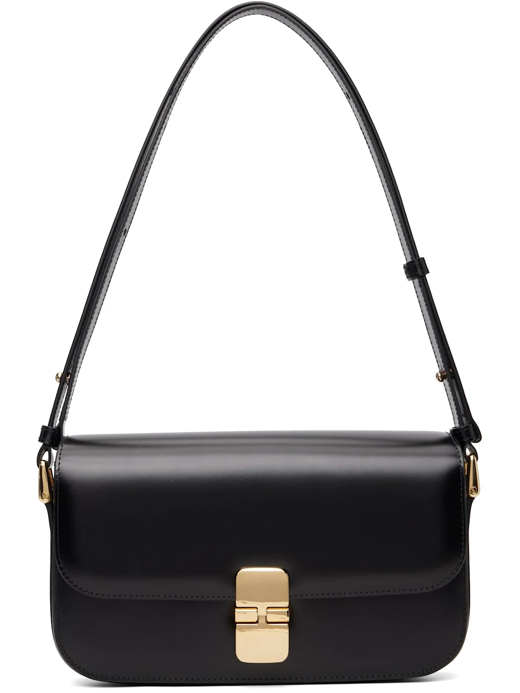 Buffed leather shoulder bag. · Adjustable shoulder strap · Logo stamp at face · Tab-slot flap · Patch pocket at interior · Cotton canvas lining · H6" x W9.5" x D2.5" Supplier color: Noir Leather. Made in Morocco 261252F048006