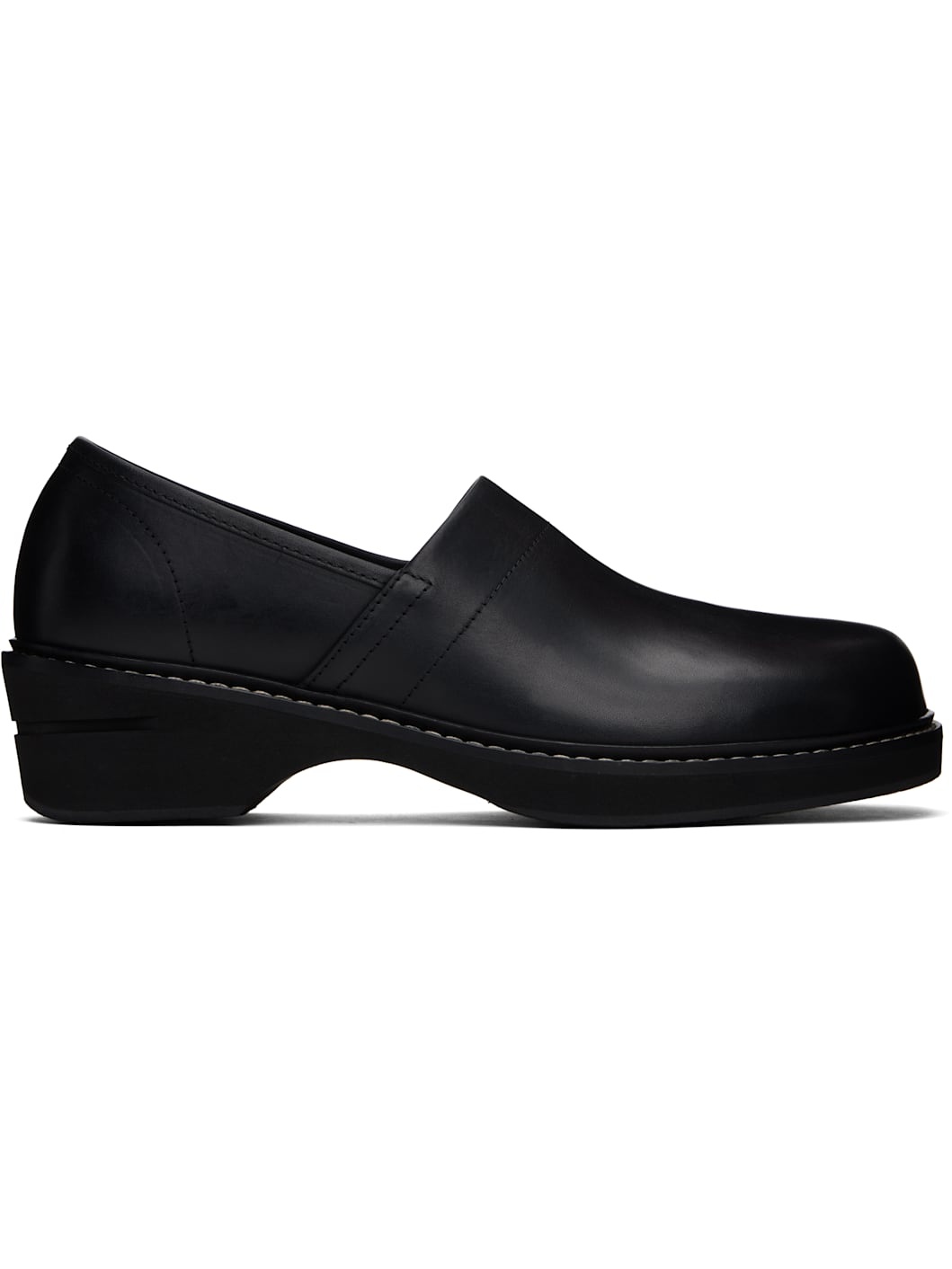 Buffed leather clogs in black. · Topstitching at welt · Suede and buffed leather lining · Logo embossed at heel · Foam rubber block heel · Treaded rubber sole · Heel: H2" Supplier color: Black Upper: leather. Sole: rubber. Made in Portugal 251252M231006