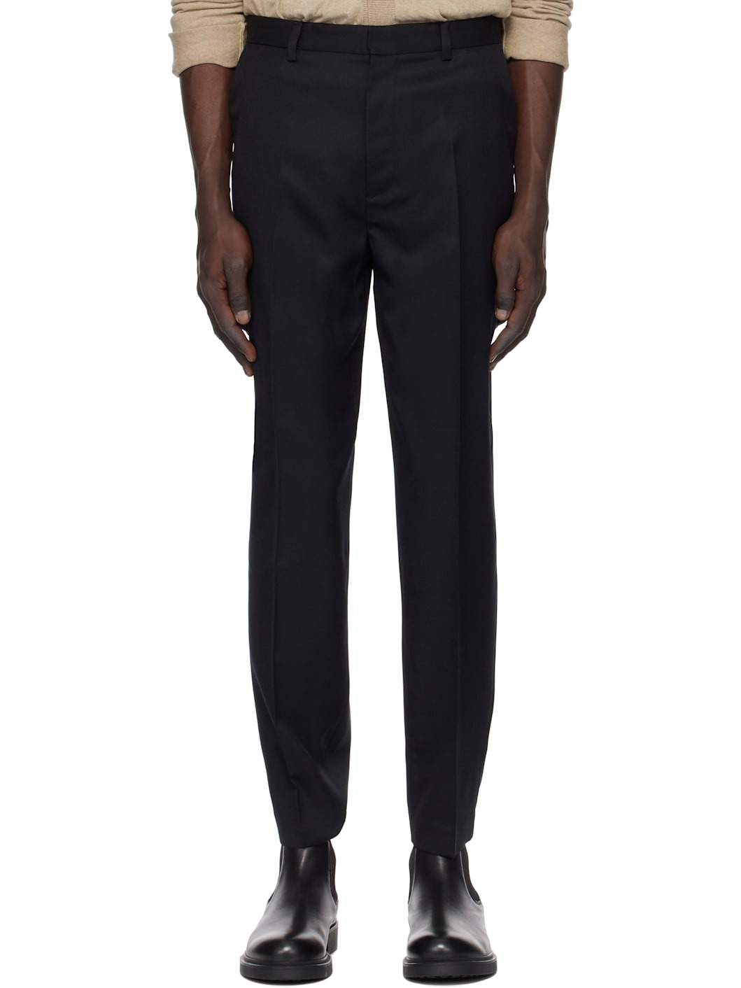 Straight-leg wool twill trousers. · Mid-rise · Belt loops · Four-pocket styling · Zip-fly · Creased legs · Partial viscose satin lining Supplier color: Black Body: 100% wool. Lining: 100% viscose. Made in Bulgaria 251252M191008