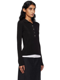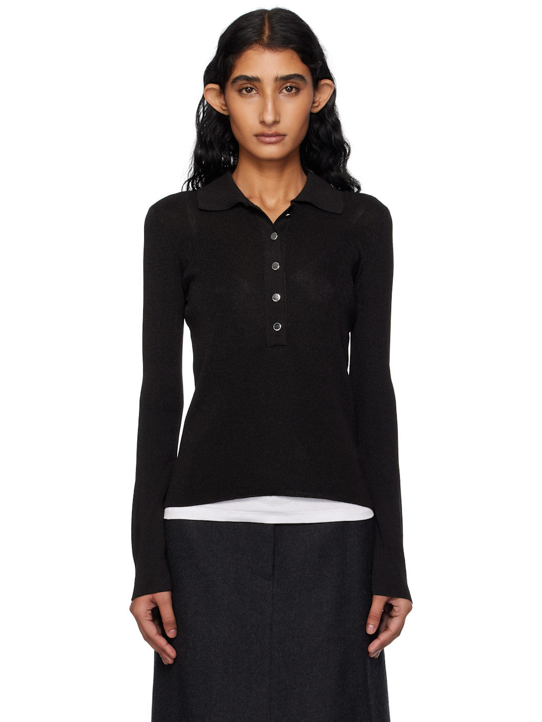Rib-knit viscose-blend polo. · Spread collar · Five-button placket Supplier color: Black 52% viscose, 48% polyester. Made in Romania 252252F108006