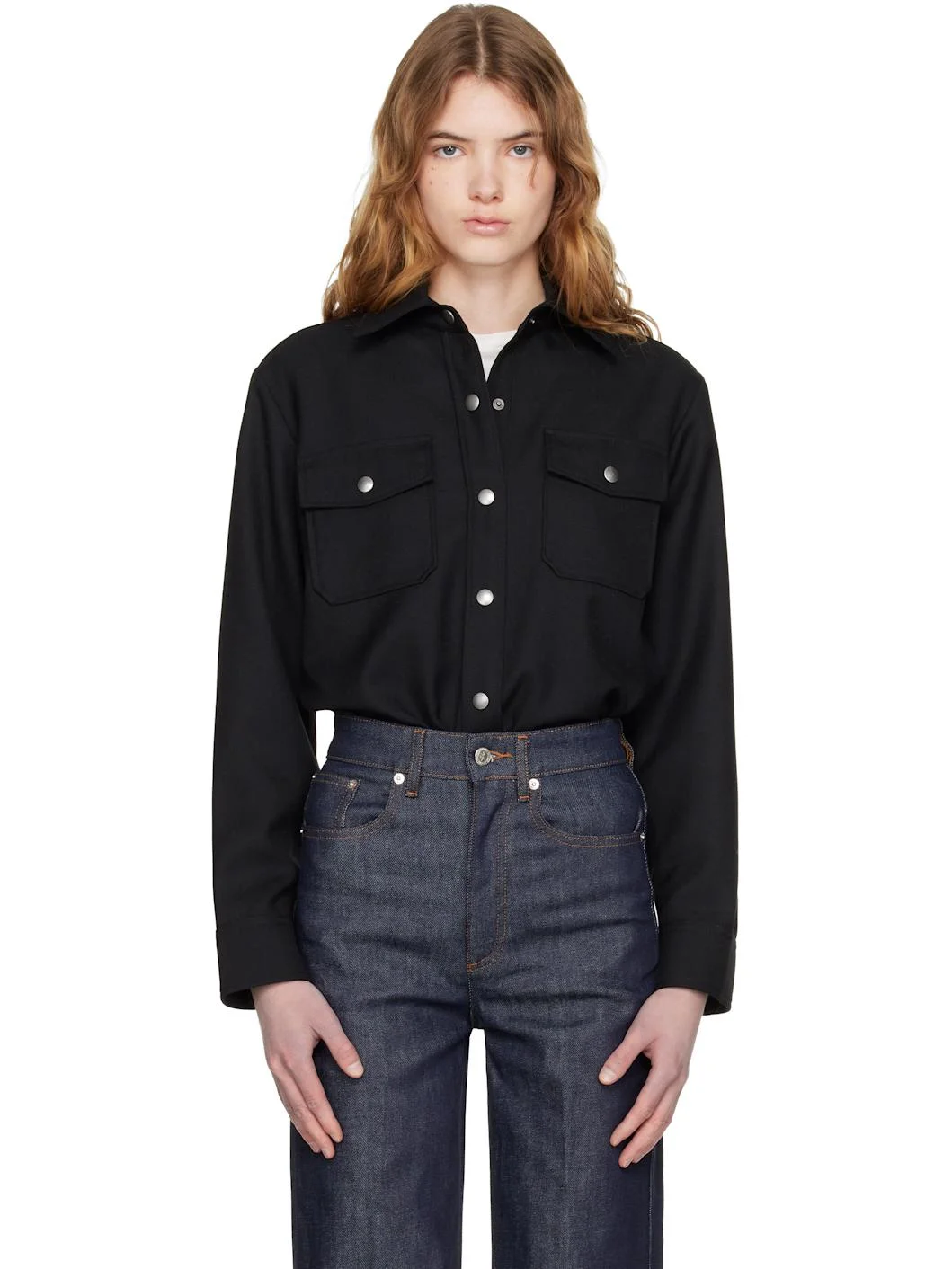 Wool-blend flannel overshirt. · Spread collar · Press-stud closure · Flap pockets at chest · Straight hem · Press-stud cuffs Supplier color: Black 55% polyester, 45% wool. Made in Bulgaria 261252F109008
