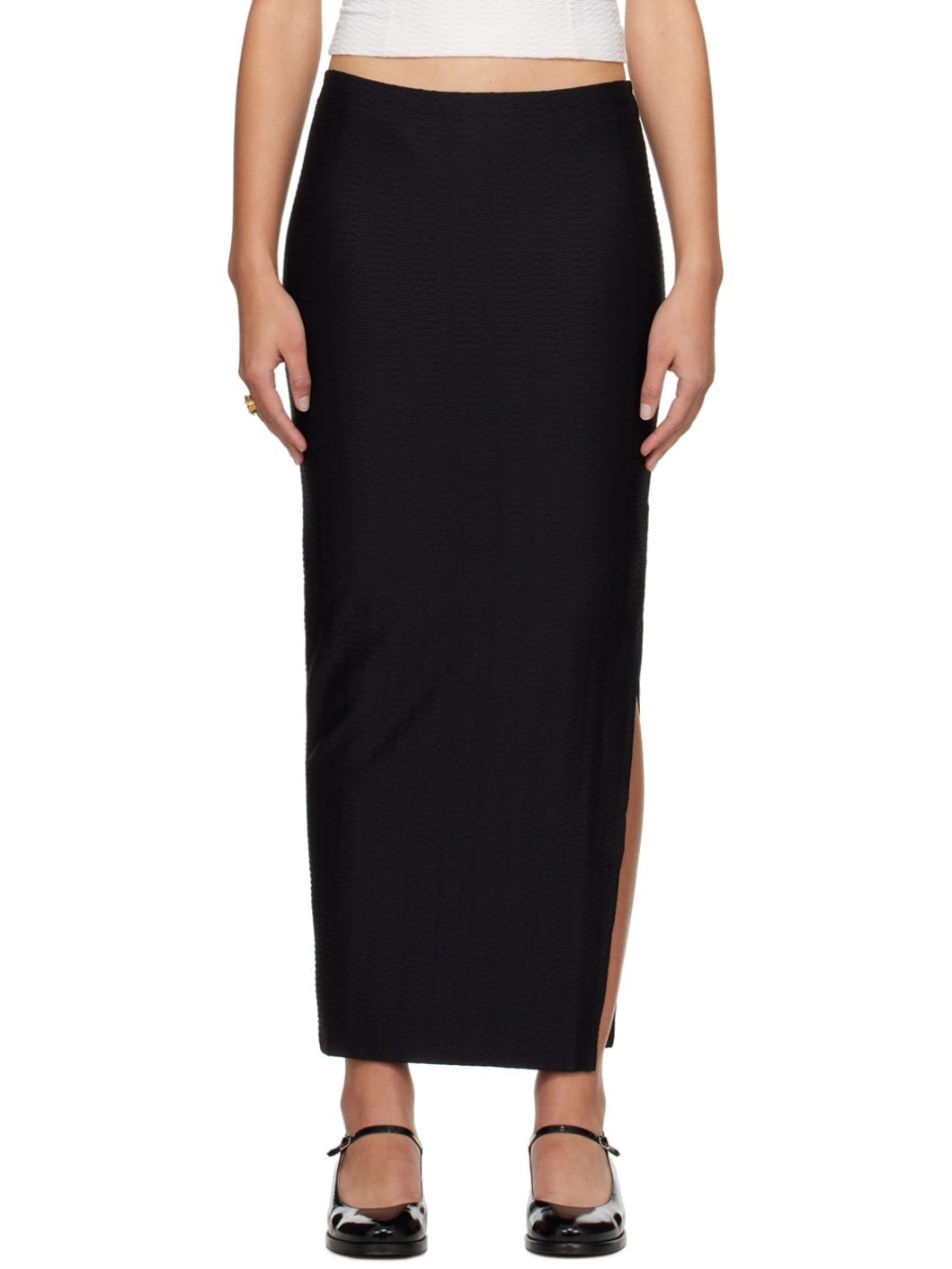 Textured stretch nylon jersey skirt. · Elasticized waistband · Vented side seam Supplier color: Black 83% polyamide, 17% elastane. Made in Portugal 241252F093000