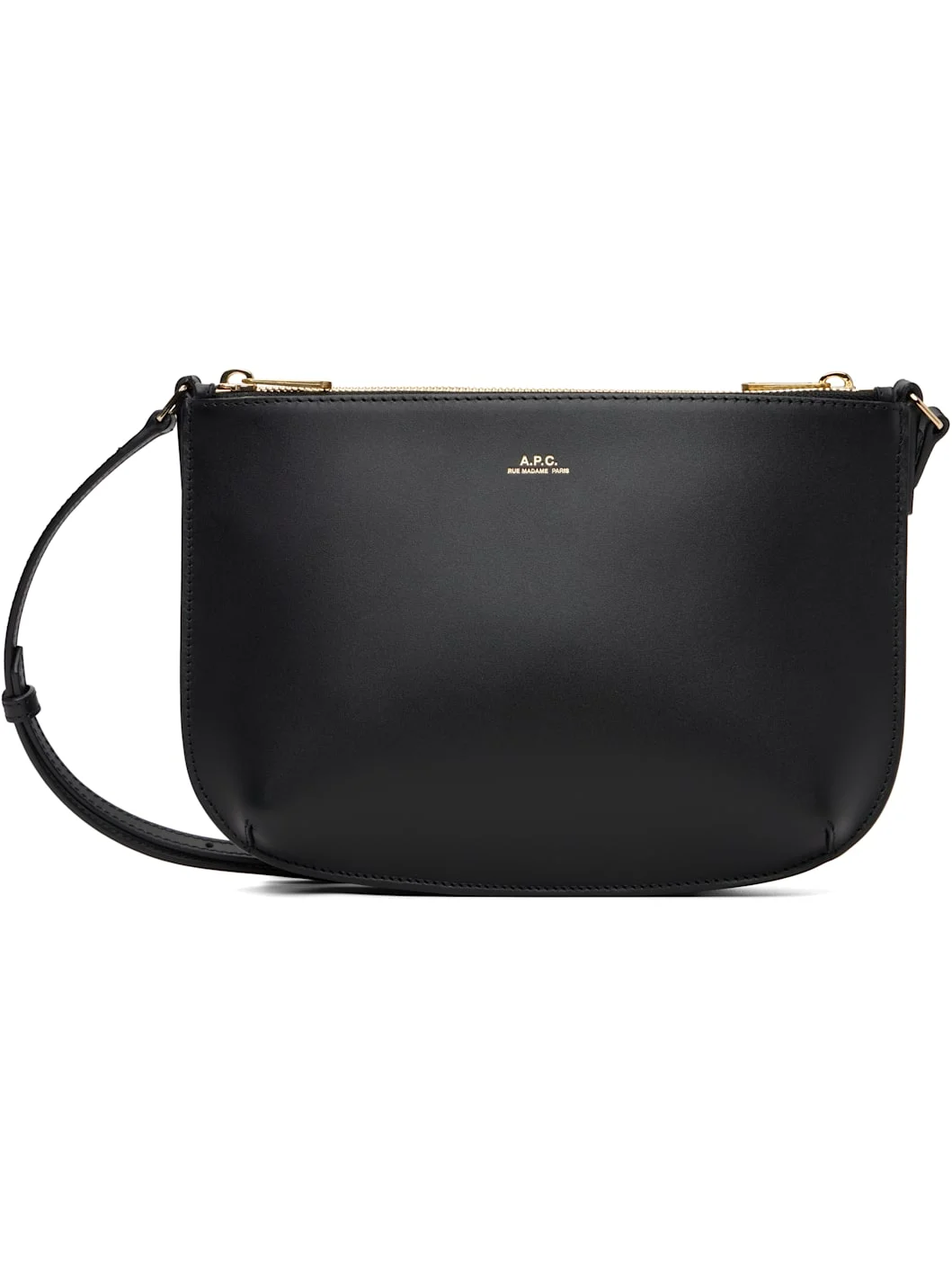 Buffed leather shoulder bag. · Adjustable crossbody strap · Logo stamp at face · Zip closures at two-compartment interior · Patch pocket at interior · Cotton canvas lining · H7.5" x W9.5" x D3" Supplier color: Noir Leather. Made in Morocco 261252F048002