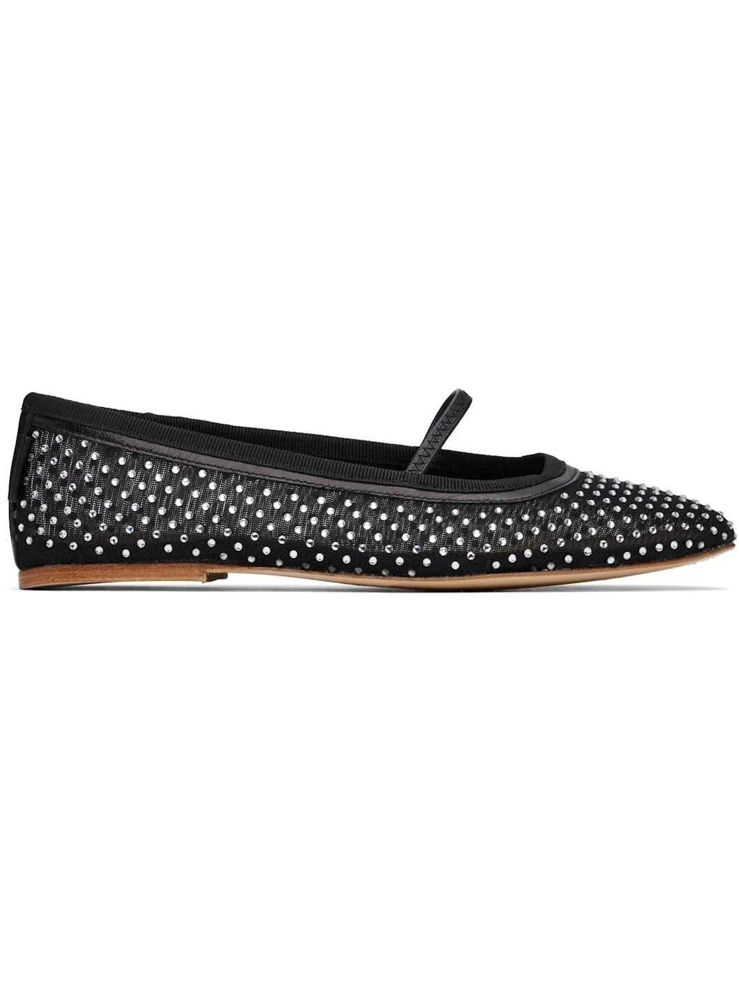 Semi-sheer mesh ballerina flats in black. · Crystal-cut appliques throughout · Elasticized strap at vamp · Grosgrain trim at collar · Leather logo flag at heel counter · Leather sole Supplier color: Black Upper: textile. Sole: leather. Made in Morocco 251252F118004