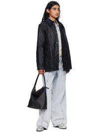 Grained leather bag. · Adjustable shoulder strap · Logo stamp at face · Two-way zip closure · Patch pocket at interior · Twill lining · H11" x W11" x D4.25" Supplier color: Black Body: 100% leather. Lining: 100% cotton. Made in Morocco 252252F049004
