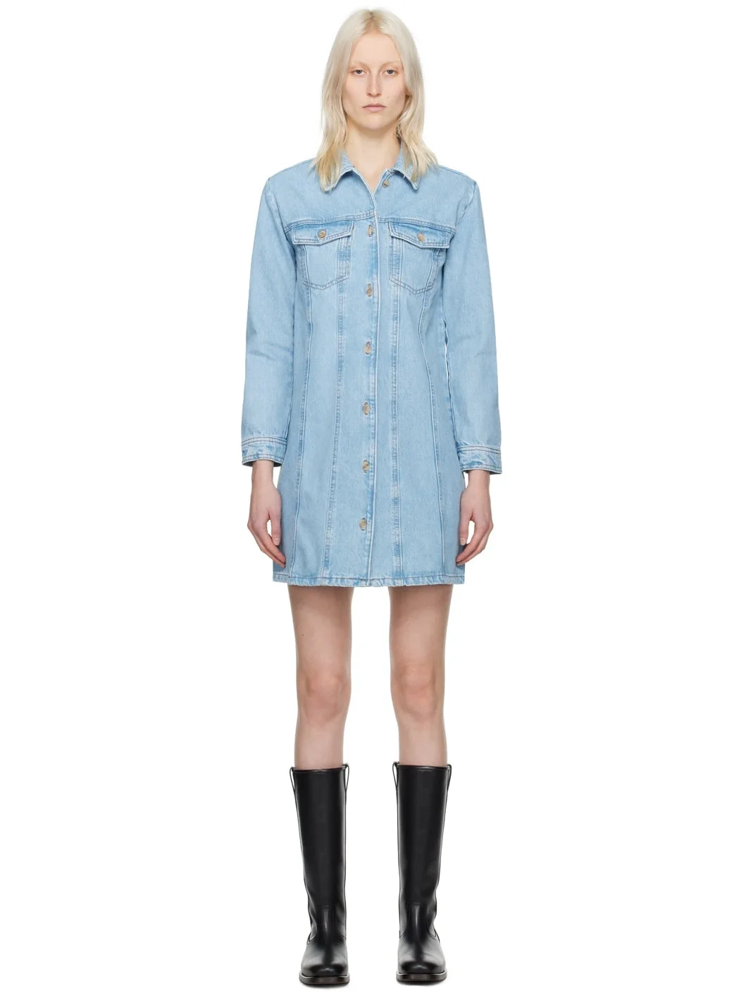 Non-stretch denim dress. Fading throughout. · Spread collar · Button closure · Flap pockets at chest · Single-button barrel cuffs · Contrast stitching in tan Supplier color: Light blue 100% cotton. Made in Egypt 241252F052002