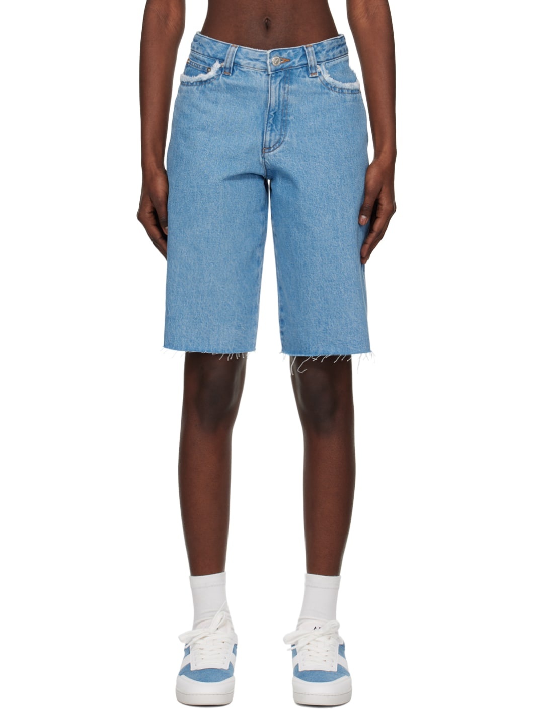 Non-stretch denim shorts. Fading throughout. · Belt loops · Five-pocket styling · Zip-fly · Frayed edge at front pockets and back · Raw edge at cuffs · Logo-engraved silver-tone hardware · Contrast stitching in tan Supplier color: Light blue 100% cotton. Made in Egypt 241252F088008