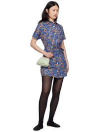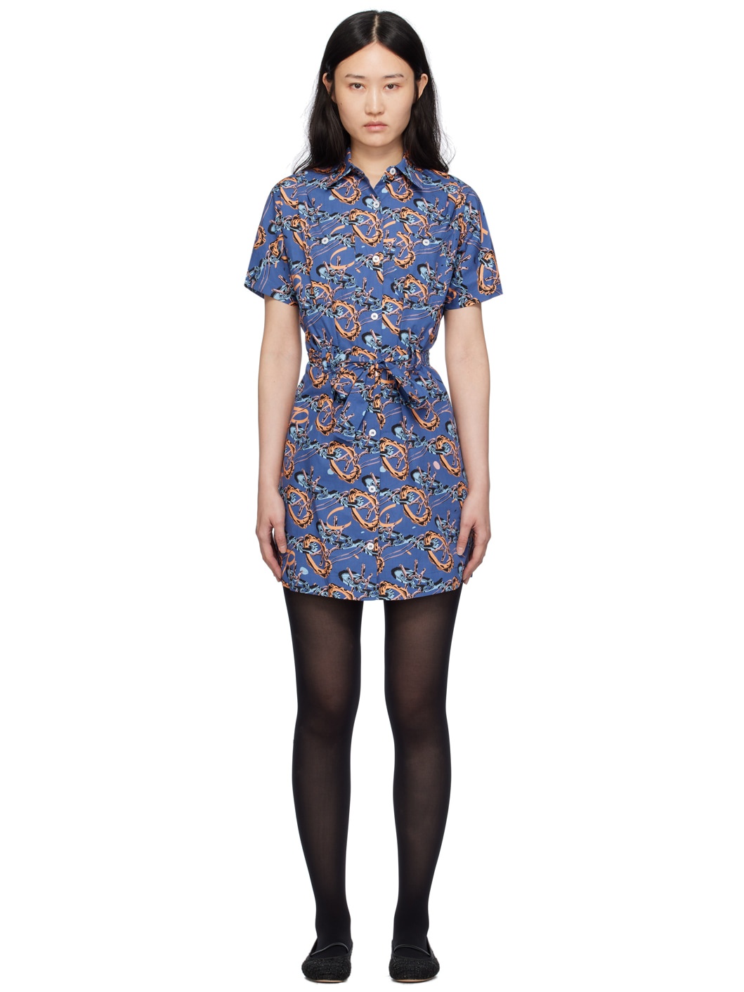 Cotton poplin dress. Graphic pattern printed throughout. · Spread collar · Button closure · Pleats at front · Patch pockets · Belt loops and detachable self-tie belt · Unlined Part of the A.P.C. x Brain Dead collaboration. Supplier color: Blue 100% cotton. Made in Tunisia 241252F052011