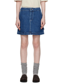 Stonewashed non-stretch organic cotton denim miniskirt. Fading throughout. · Mid-rise · Four-pocket styling · Zip-fly · Hammer loop at side seam · Notch at back waistband · Logo patch at back pocket · Logo-engraved antiqued silver-tone hardware · Contrast stitching in white Supplier color: Washed indigo 100% organic cotton. Made in Viet Nam 251252F090003