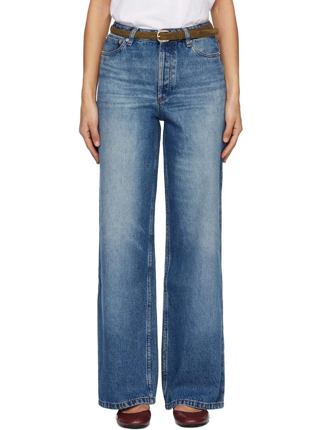Stonewashed non-stretch denim jeans. · Straight-leg · High-rise · Fading and whiskering throughout · Belt loops · Five-pocket styling · Button fly · Logo-engraved silver-tone hardware · Contrast stitching in tan Supplier color: Indigo delave 100% cotton. Made in Egypt 261252F069004