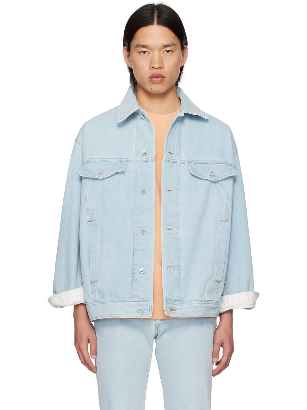 Non-stretch denim jacket. Fading throughout. · Spread collar · Button closure · Flap and welt pockets · Dropped shoulders · Single-button barrel cuffs · Adjustable button tabs at back hem Supplier color: Light blue 100% cotton. Made in Egypt 242252M177003