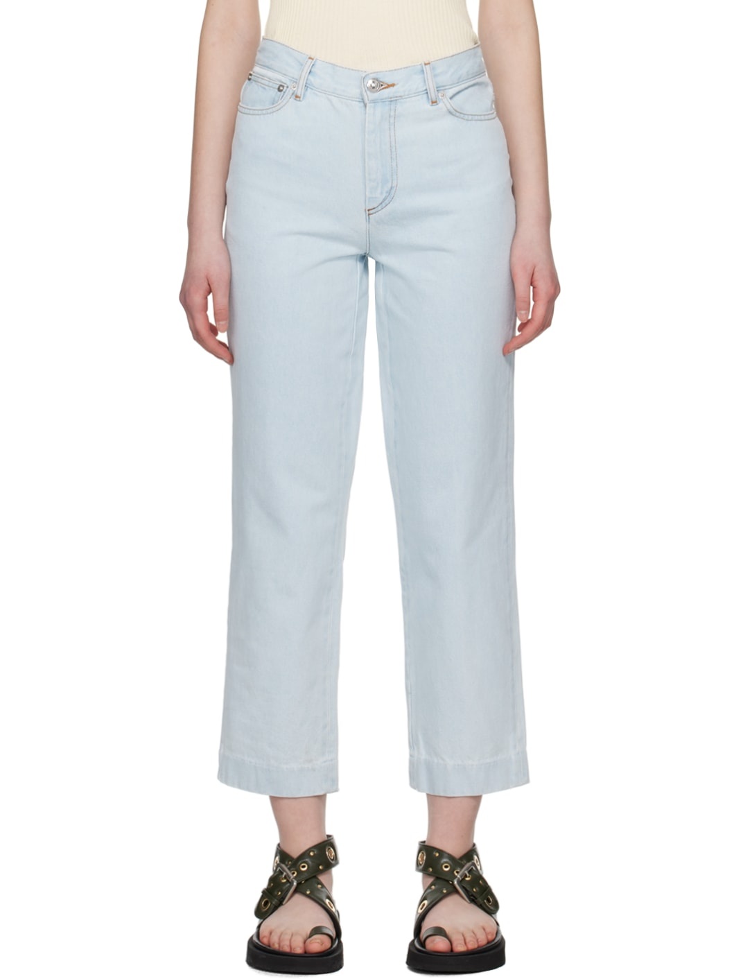 Straight-leg flared non-stretch denim jeans. · High-rise · Belt loops · Five-pocket styling · Zip-fly · Cropped legs · Logo-engraved silver-tone hardware · Contrast stitching in tan Supplier color: Bleached out 100% cotton. Made in Egypt 241252F069016