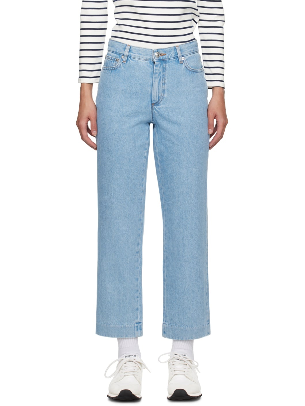 Straight-leg non-stretch denim jeans. Fading throughout. · High-rise · Belt loops · Five-pocket styling · Zip-fly · Cropped leg · Contrast stitching in tan Supplier color: Light blue 100% cotton. Made in Egypt 241252F069004