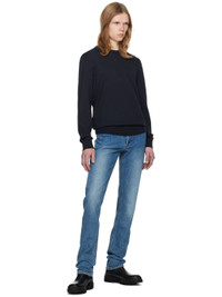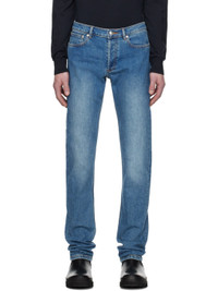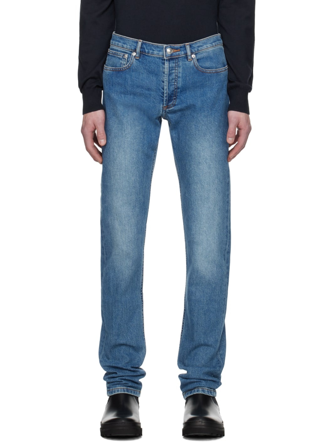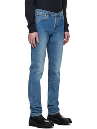Stonewashed slim-fit straight-leg stretch denim jeans. Fading throughout. · Low-rise · Belt loops · Five-pocket styling · Button-fly · Logo-engraved silver-tone hardware · Contrast stitching in brown Supplier color: Washed indigo 98% cotton, 2% polyurethane. Made in Viet Nam 241252M186025