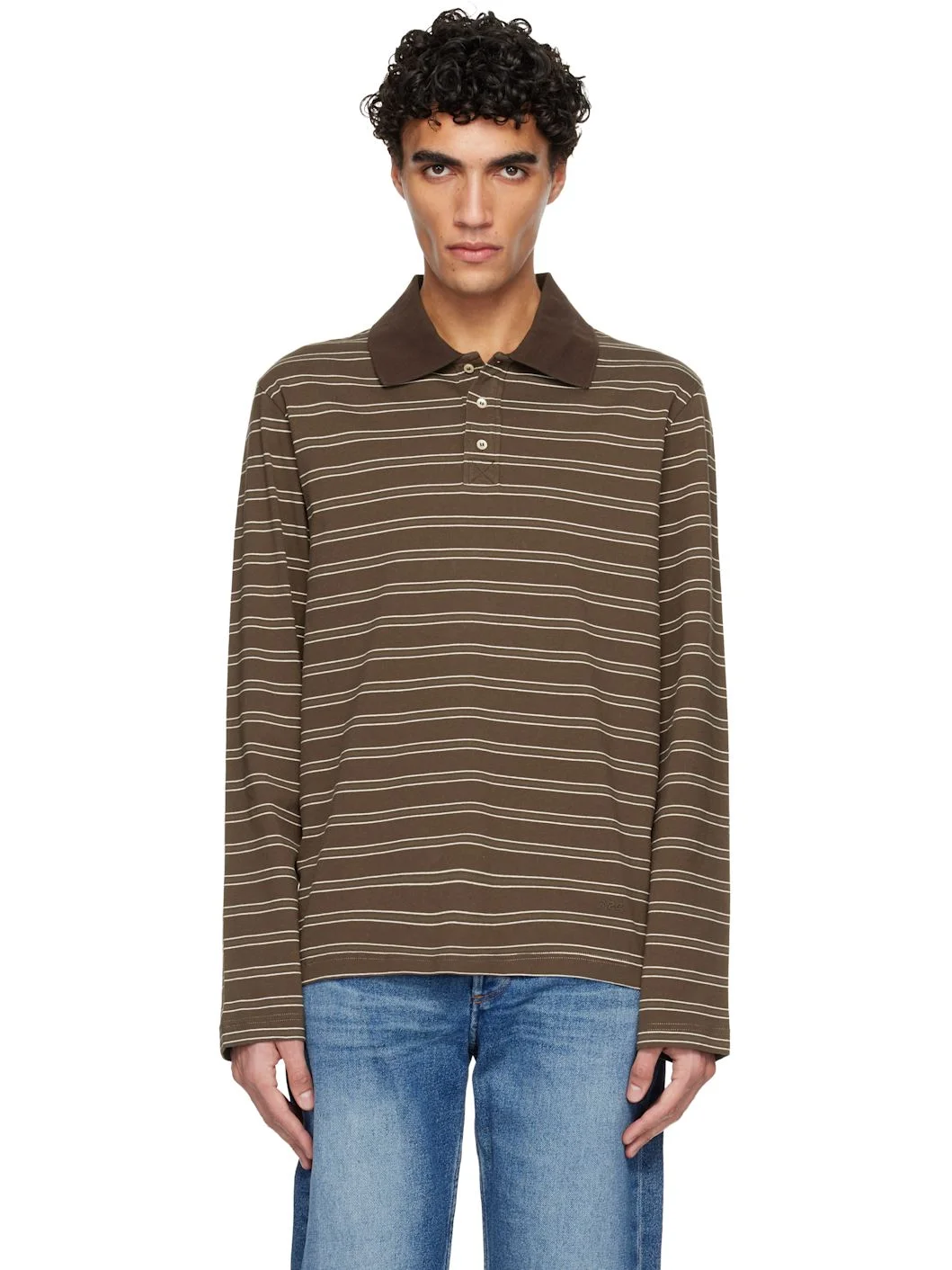 Organic cotton- and recycled cotton-blend jersey polo. · Stripes throughout · Rib-knit spread collar · Three-button placket · Logo embroidered at front hem · Mother-of-pearl hardware Supplier color: Marron Body: 50% organic cotton, 50% recycled cotton. Trim: 100% cotton. Made in Portugal 261252M212012