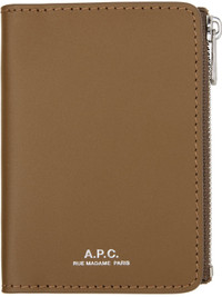 Buffed leather bifold card holder. · Logo stamp at face · Buffed leather interior · Four card slots · Zip coin compartment · Twill lining · H4" x W3" x D0.75" Supplier color: Soil Leather. Made in Morocco 252252M163001