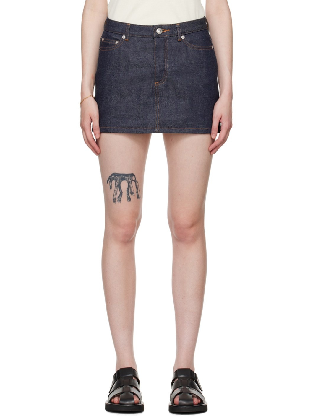 Non-stretch raw selvedge denim skirt. Fading throughout. · Belt loops · Five-pocket styling · Zip-fly · Logo-engraved silver-tone hardware · Contrast stitching in brown Supplier color: Indigo 100% cotton. Made in Viet Nam 242252F090000