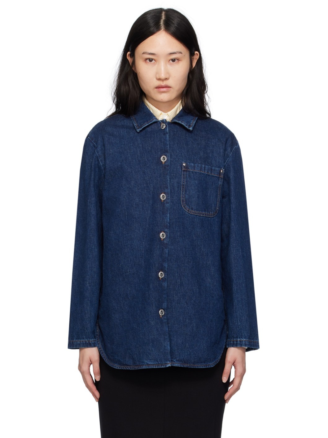 Non-stretch denim jacket. Rivets throughout. · Spread collar · Button closure · Patch pocket · Seam pockets · Vented side seams · Button vent at cuffs · Inverted box pleat at back yoke · Logo-engraved silver-tone hardware · Contrast stitching in tan Supplier color: Washed indigo 100% cotton. Made in Viet Nam 241252F060005
