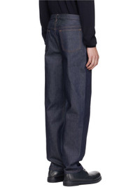 Tapered wide-leg stretch denim jeans. · High-rise · Belt loops · Five-pocket styling · Zip-fly · Logo engraved silver-tone hardware · Contrast stitching in tan Supplier color: Indigo 98% cotton, 2% polyurethane. Made in Viet Nam 242252M186016