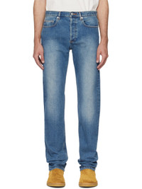 Straight-leg stonewashed stretch denim jeans. Fading and subtle distressing throughout. · Low-rise · Belt loops · Five-pocket styling · Button-fly · Contrast stitching in tan · Logo-engraved silver-tone hardware Supplier color: Indigo 98% cotton, 2% polyurethane. Made in Viet Nam 241252M186024