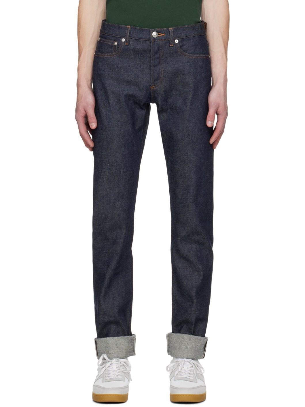 Slim-fit straight-leg non-stretch selvedge denim jeans. Fading throughout. · Low-rise · Belt loops · Five-pocket styling · Button-fly · Logo-engraved silver-tone hardware · Contrast stitching in brown Supplier color: Indigo 100% cotton. Made in Viet Nam 241252M186005