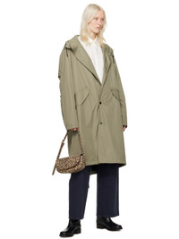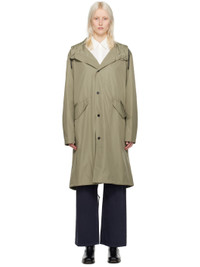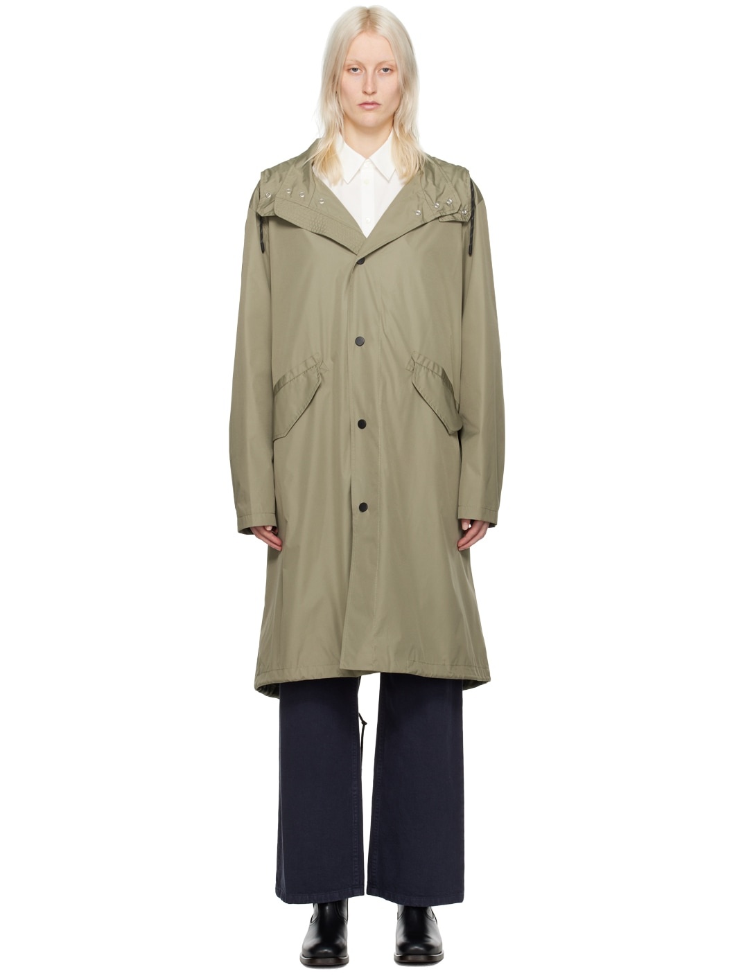 Water-repellent polyester- and acrylic-blend taffeta coat. · Drawstring and logo patch at brimmed hood · Throat guard at stand collar · Press-stud closure · Flap pockets · Epaulettes · Tucks at sleeves · Central vent with drawstring at back hem · Full plain-woven lining Supplier color: Light khaki Body: 60% polyester, 32% acrylic, 8% polyurethane. Fill: 100% polyester. Lining: 100% polyester. Made in Romania 241252F059000
