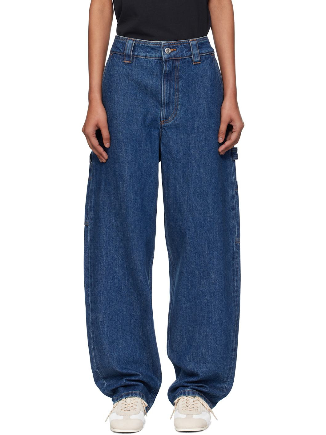 Stonewashed non-stretch organic cotton denim jeans. · Fading throughout · Loose-fit and straight-leg · Mid-rise · Belt loops · Four-pocket styling · Zip fly · Patch pockets at outseam · Hammer loop and patch pocket at outseam · Contrast stitching in tan Supplier color: Indigo delave 100% organic cotton. Made in Viet Nam 252252F069005