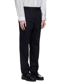 Cotton- and wool-blend twill trousers. · Straight-leg · Mid-rise · Elasticized waistband · Three-pocket styling · Zip fly · Pinched seams at front Supplier color: Navy blue 90% cotton, 10% wool. Made in Romania 252252M191005