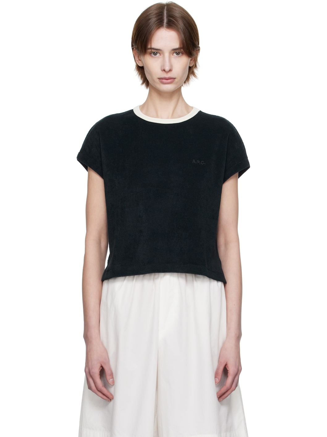 Stretch organic cotton terrycloth T-shirt. · Rib-knit crewneck · Logo embroidered at chest · Cropped tennis-tail hem · Cap sleeves Supplier color: Dark navy 99% organic cotton, 1% elastane. Made in Portugal 251252F110033