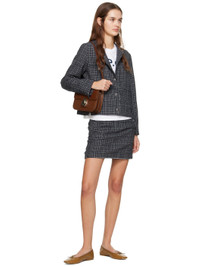 Cotton- and viscose-blend tweed skirt. Jacquard check pattern throughout. · Belt loops · Four-pocket styling · Zip-fly · Frayed edge at front pockets and hem · Full satin lining · Logo-engraved silver-tone hardware Supplier color: Marine Body: 41% cotton, 29% viscose, 28% polyester, 2% other fibres. Lining: 100% viscose. Made in Bulgaria 241252F090000