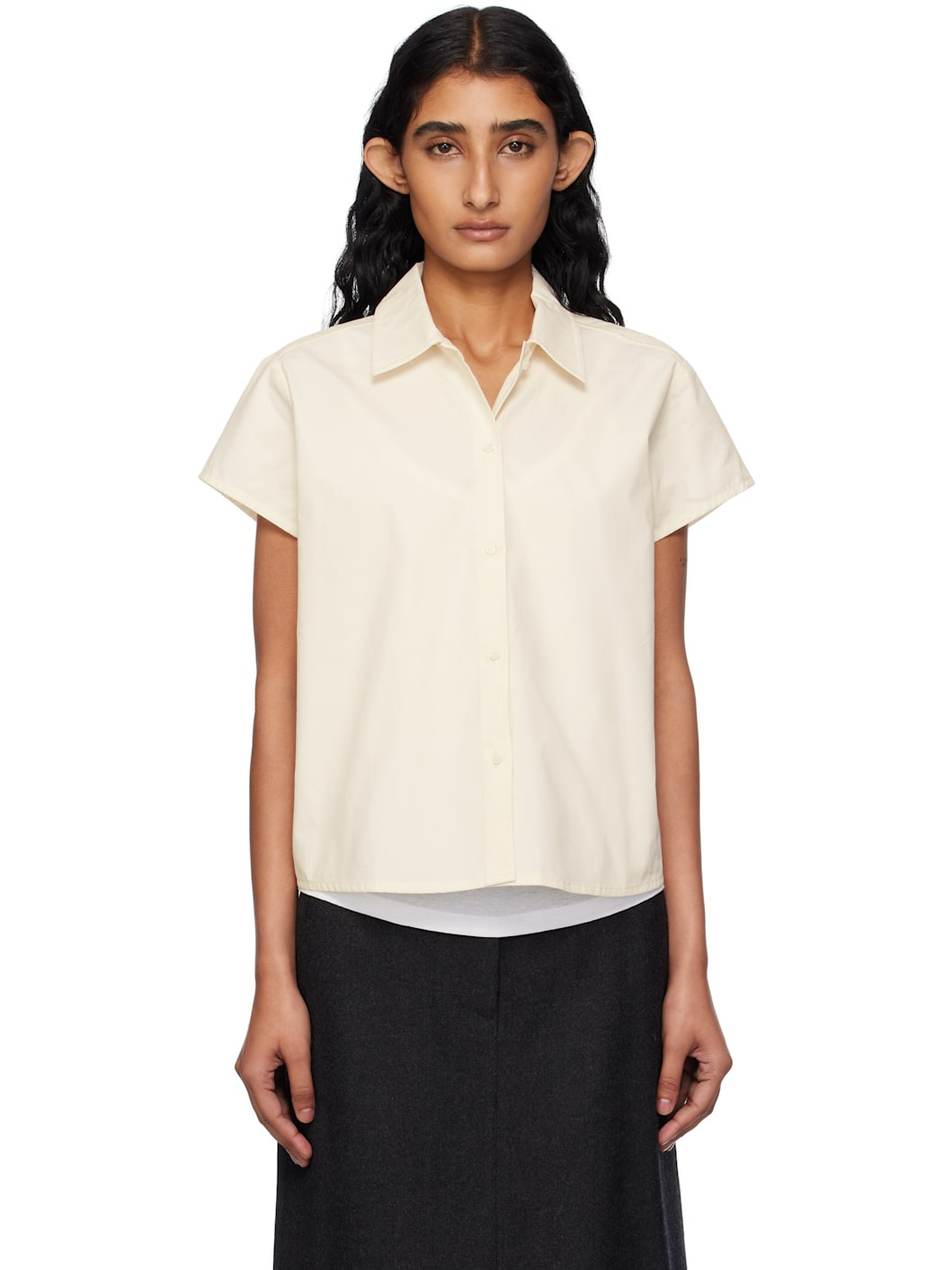 Organic cotton poplin shirt. · Spread collar · Button closure · Mother-of-pearl hardware Supplier color: Chalk 100% organic cotton. Made in Tunisia 252252F109003