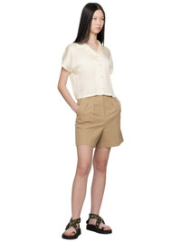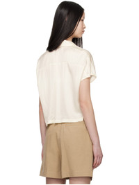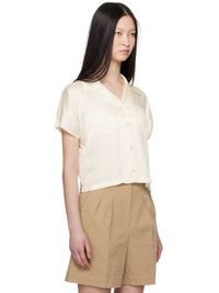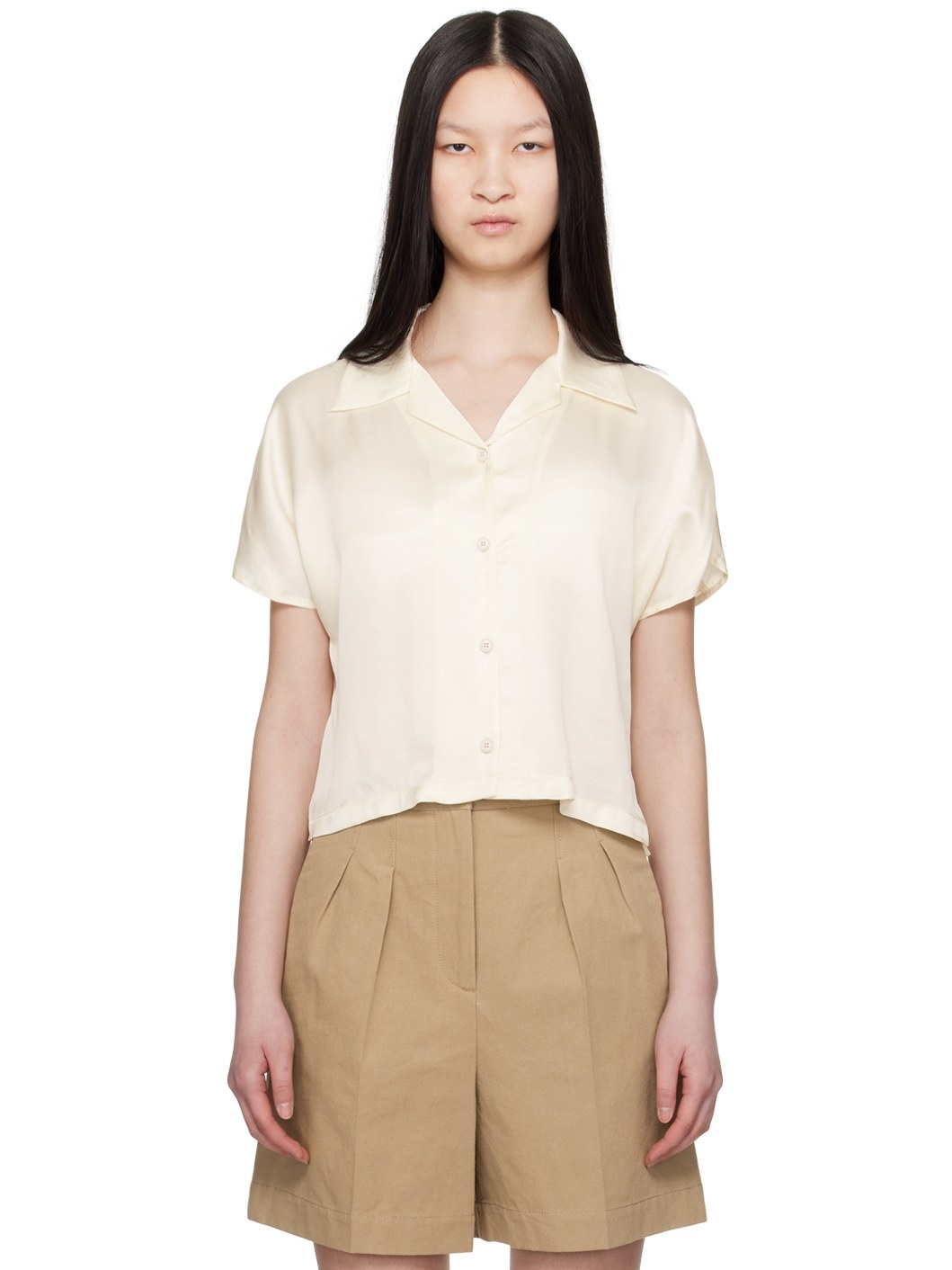 ECOVERO™ viscose satin shirt. · Open spread collar · Button closure · Cropped hem · Vented side seams · Dolman sleeves Supplier color: Ecru 100% viscose. Made in Tunisia 241252F109003