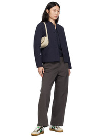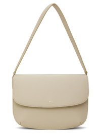 Vegetable-tanned buffed leather shoulder bag in beige. · Fixed carry handle · Logo stamp at face · Accordion panel at sides · Magnetic flap · Patch pocket at two-compartment interior · Cotton canvas lining · H7.5" x W9.75" x D2.25" Supplier color: Cream