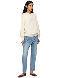 Stretch GOTS-certified organic cotton French terry sweatshirt. · Rib-knit crewneck, hem, and cuffs · Logo flocked at chest Supplier color: Ecru/Bleu ciel 99% organic cotton, 1% elastane. Made in Turkey 252252F098006