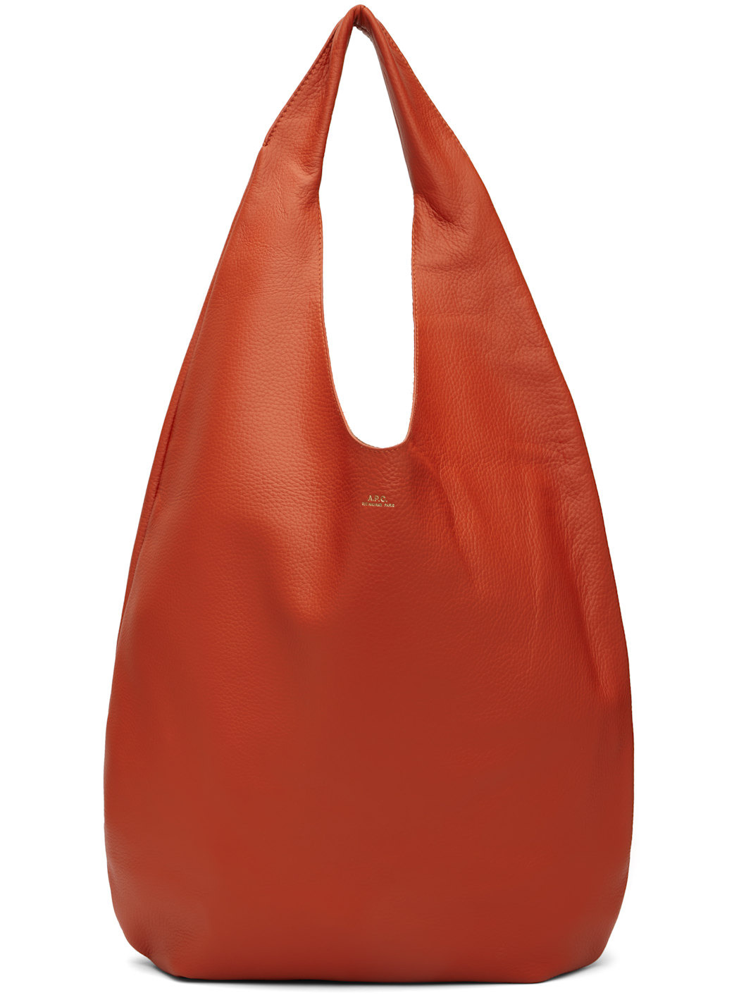 Pebble-grained leather shoulder bag. · Integrated shoulder strap · Gold-tone logo stamp at face · Open throat · Unlined · H14" x W15" x D3.5" Supplier color: Mango Leather. Made in Morocco 252252F048006