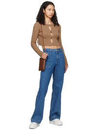 Buffed leather shoulder bag in tan. · Adjustable pin-buckle crossbody strap · Gold-tone logo stamp at face · Patch pocket at interior · Goatskin suede lining · H6.5" x W5" x D1.5" Supplier color: Hazelnut