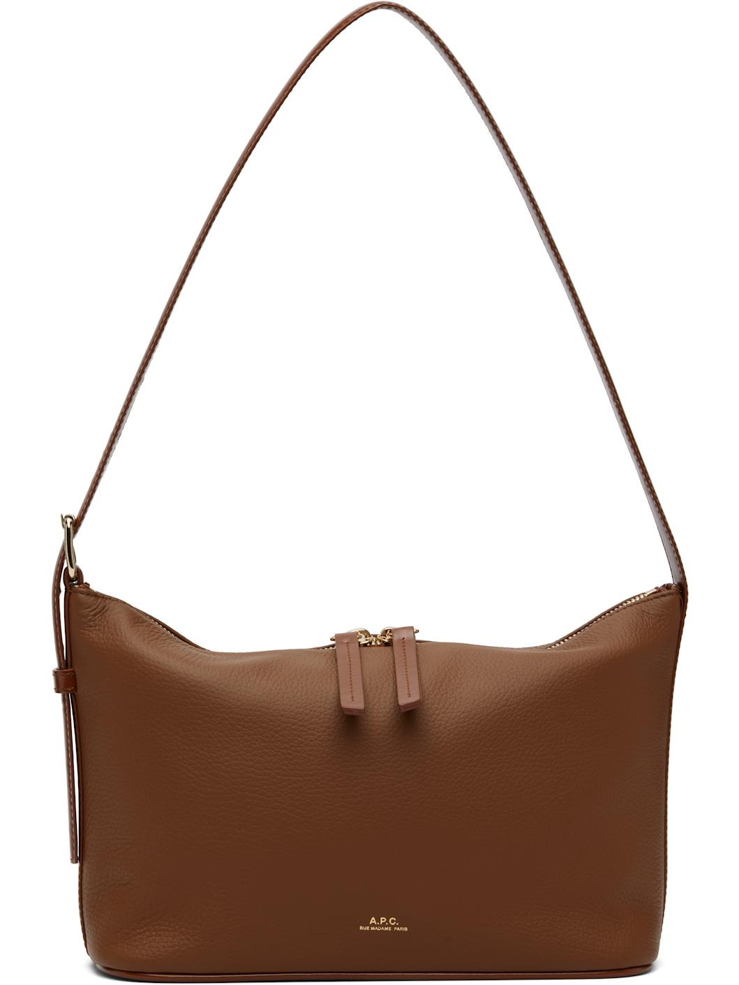 Pebble-grained leather shoulder bag. · Adjustable shoulder strap · Gold-tone logo stamp at face · Two-way zip closure · Patch pocket at interior · Cotton twill lining · H6.5" x W11" x D4" Supplier color: Noisette Leather. Made in Portugal 252252F048003