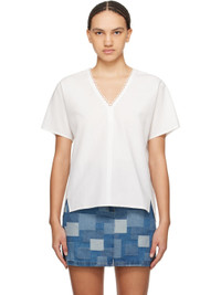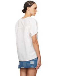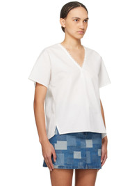 Plain-woven cotton- and linen-blend blouse. · Scalloped trim at V-neck · Vented side seams · Twin pleats at back yoke Supplier color: Off white 74% cotton, 26% linen. Made in Bulgaria 241252F107002