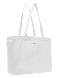 Cotton canvas tote in white. · Fixed twin carry handles · Text and graphic printed at face · Logo flag at side · Logo printed at back face · Patch pocket at interior · H13.5" x W17.5" x D5.5" Part of the A.P.C. x JJJJound collection. Supplier color: White 100% cotton. Made in Bulgaria 242252F049000