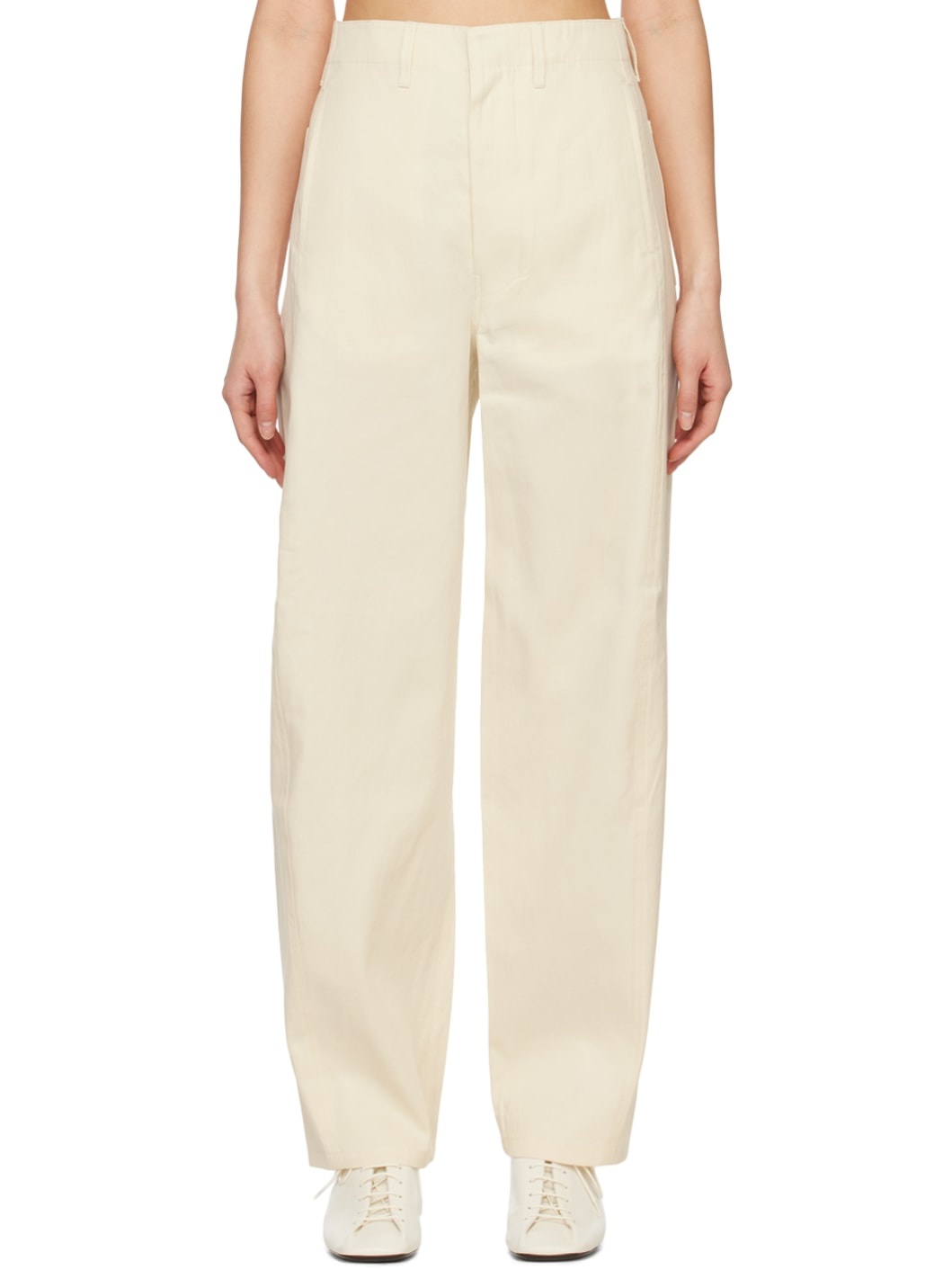 Relaxed-fit wide-leg cotton twill trousers. · Belt loops · Four-pocket styling · Zip-fly Supplier color: Cream 100% cotton. Made in South Korea 231373F087007